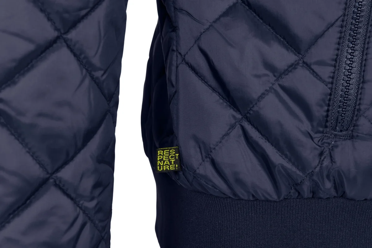 Blouson Pikeur Avino Blouson matelassé, look sportif, léger et attrayant. Matelassé 80 grammes comfort temp par Freudenberg Bande tricotée sur le col, l’ourlet et les poignets. Large impression Respect Nature imprimée à l’intérieur. Matériau extérieur recyclé. Doublure recyclée Petite application sur le col à l’arrière Nouvel emblème sur la manche. Taille homme Coloris Bleu Nuit