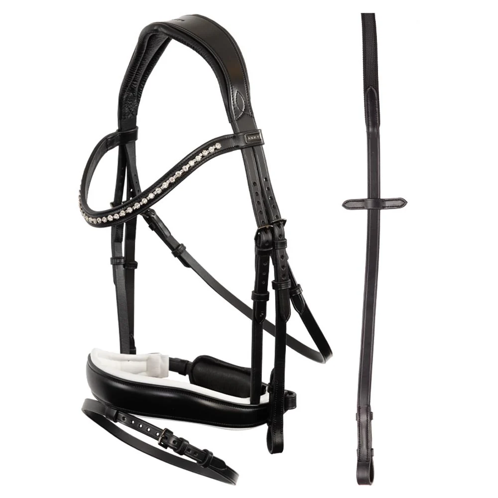 Livré avec des rênes en caoutchouc supergrip sans arrêts de rênes.