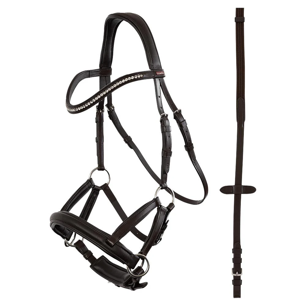Alliez élégance et confort avec le bridon sans mors Premiere Roubaix. Ce bridon side-pull est fabriqué en cuir haut de gamme souple et résistant, offrant un excellent ajustement anatomique. Sa têtière ergonomique rembourrée réduit la pression sur la nuque, tandis que la muserolle rembourrée assure un contact plus doux au niveau du nez.