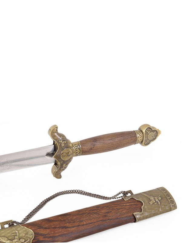Épée chinoise Chenlian, Taiji, Acier inox semie rigide. Cette épée de tai chi très bien équilibrée est idéale pour débuter la pratique. Sa lame est semie rigide et en acier inoxydable, quant au fourreau lui est en bois. Motifs samouraïs sur le fourreau, Ying et Yang sur la garde et le pommeau. Lame gravée un coté […]