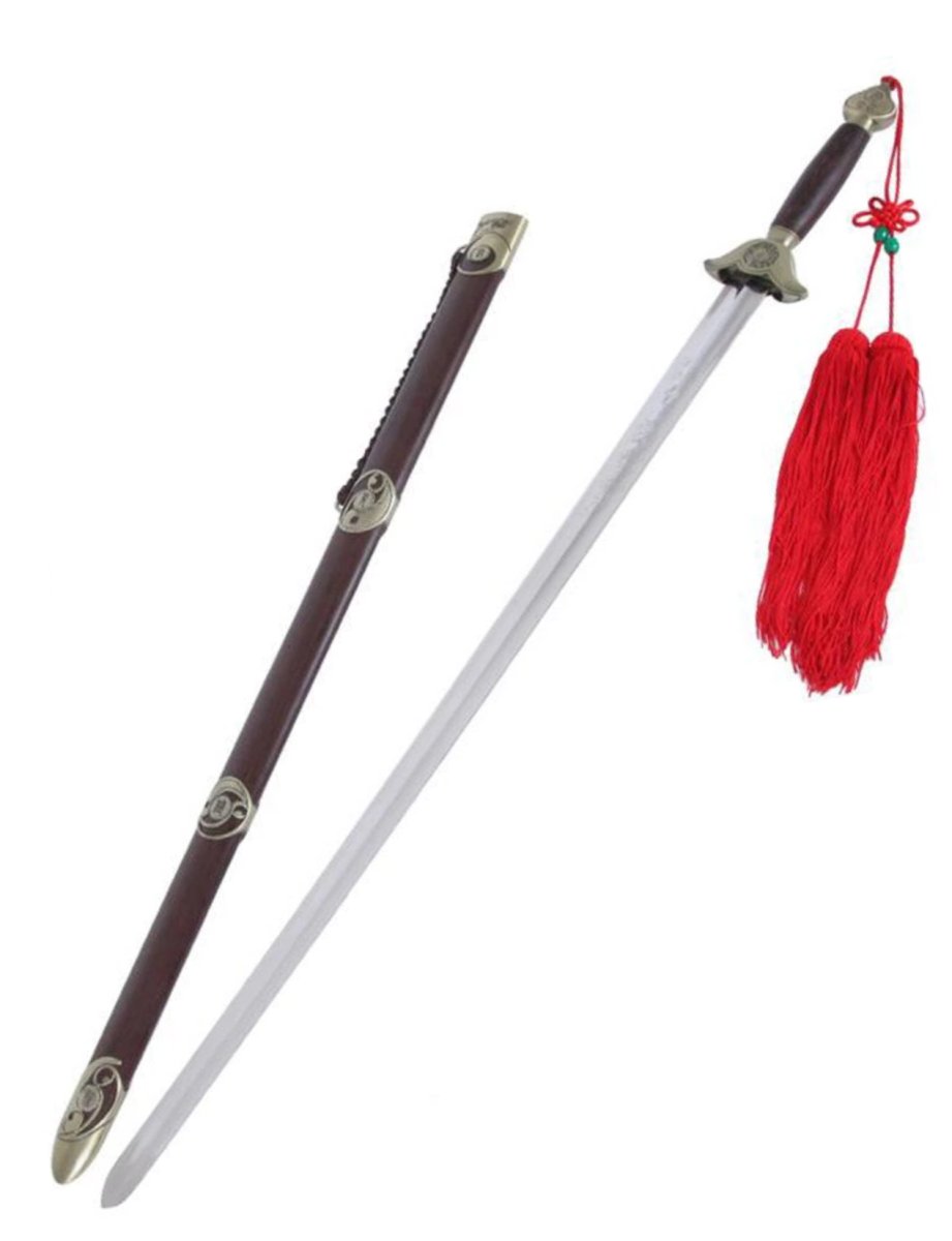 Cette épée de Kung Fu Tai Chi Chuan se distingue par sa lame semi-souple qui permet de travailler les mouvements fluides et précis de l’art martial chinois. Le manche en bois peint avec un pompon rouge offre une prise en main confortable et sécurisée, tandis que le symbole Ying Yang gravé sur la lame renforce le lien profond entre le pratiquant et la philosophie du Tai Chi. Que vous soyez un débutant souhaitant perfectionner ses techniques ou un pratiquant avancécherchant à approfondir sa pratique, cette épée est l’outil idéal pour une immersion complète dans l’univers du Tai Chi Chuan.