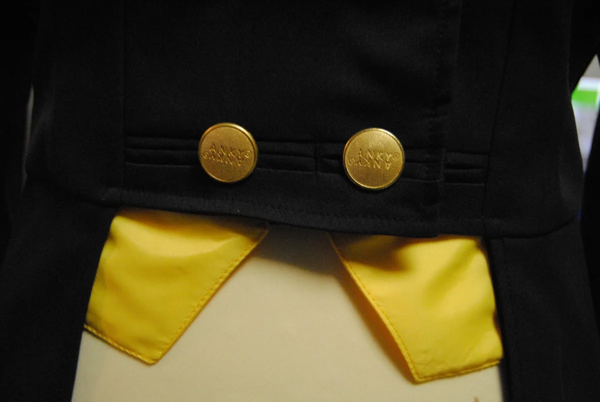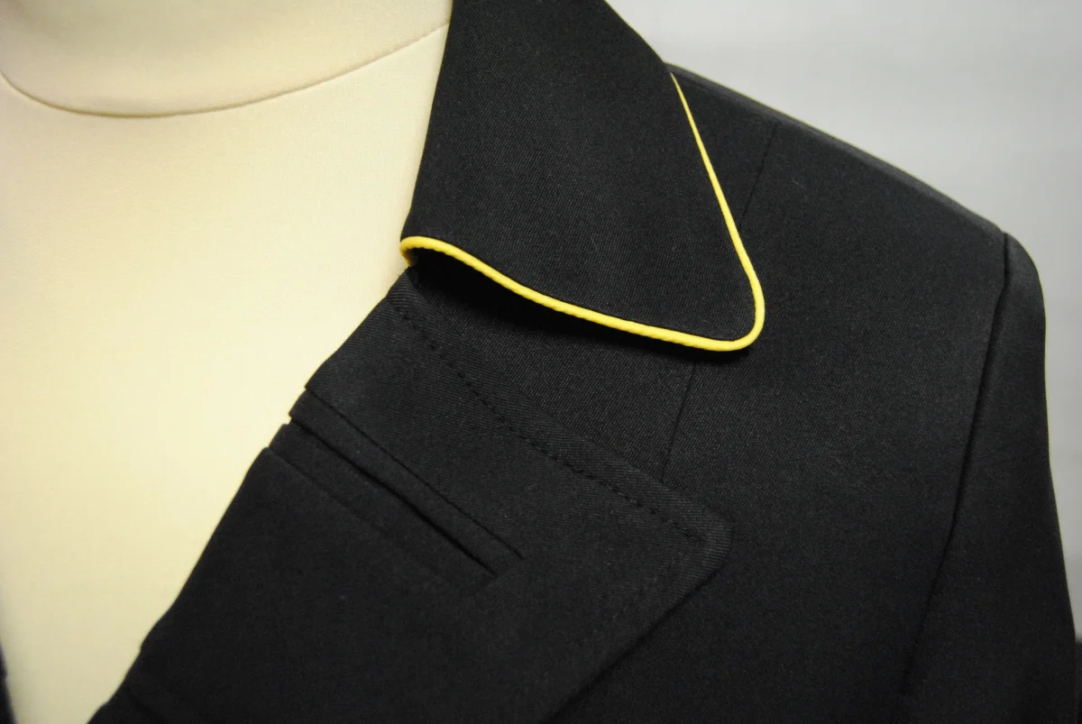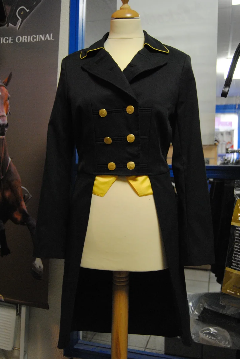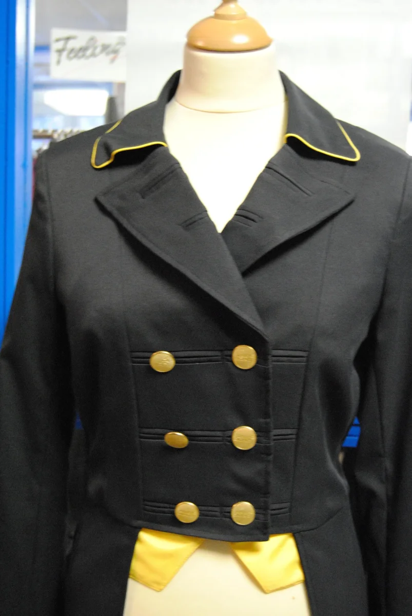 En tissu traité déperlant. Coloris noir liseré jaune pointes dorées.