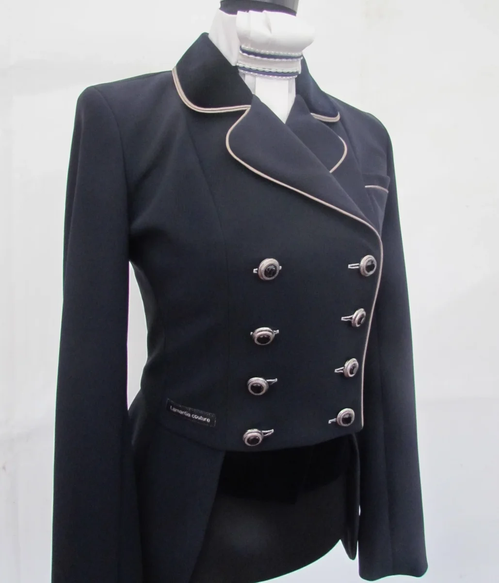 Mini-frac créé et fabriqué en France. Tissu technique softshell confortable et respirant. Entièrement personnalisable Possibilité de sur-mesure Nombreux coloris de tissu, liserés, pointes différents modèles de boutons. Utilisation : Autorisé en compétition à tout niveau d’épreuve. Options: Boutons srass Biai strass Tissus: softshell classique et élégant sofshell fin, plus fin, léger et strech softshell ajouré, […]