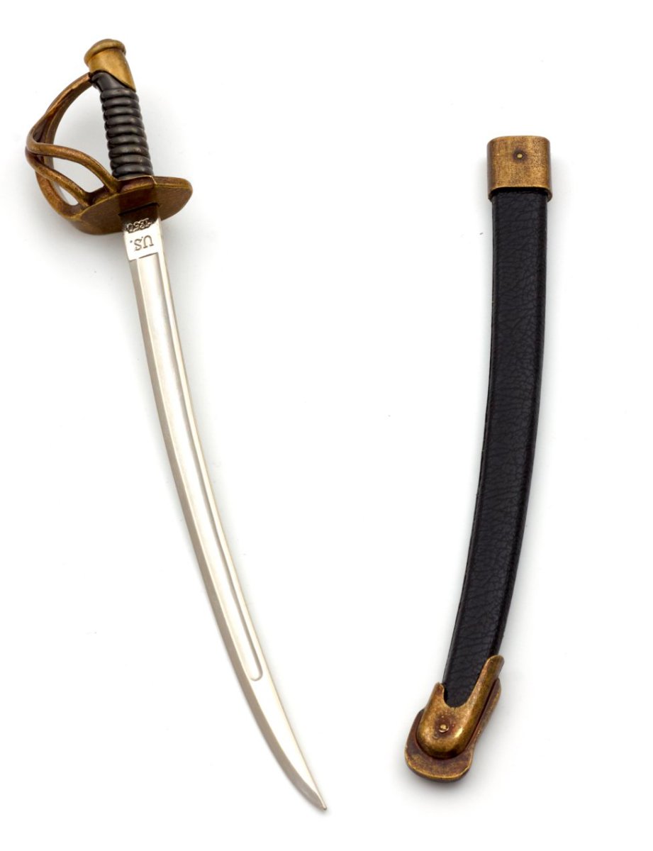 Conçu pour marier authenticité et fonctionnalité, l’ouvre-lettre sabre des officiers affiche une lame métallique élégamment incurvée, fidèle à la forme originelle des sabres d’apparat. Sa finition soignée et son équilibre parfait en font un instrument de coupe fluide et agréable à manier. Avec ses 26 cm de longueur et son poids de 111 g, il offre une excellente prise en main et une sensation de solidité qui rappelle les véritables armes de prestige d’autrefois. ( Avec inscription lame US. 1860)