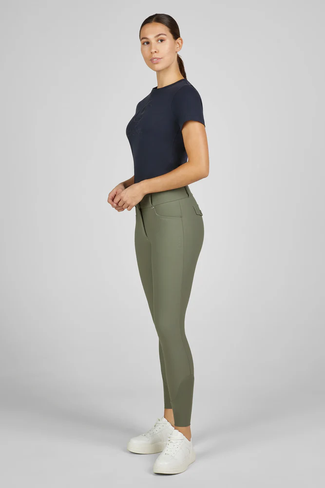 Le grip intégral Eskadron offre une excellente adhérence en selle, tandis que les bas de jambe élastiques assurent une mise en place parfaite dans les bottes.