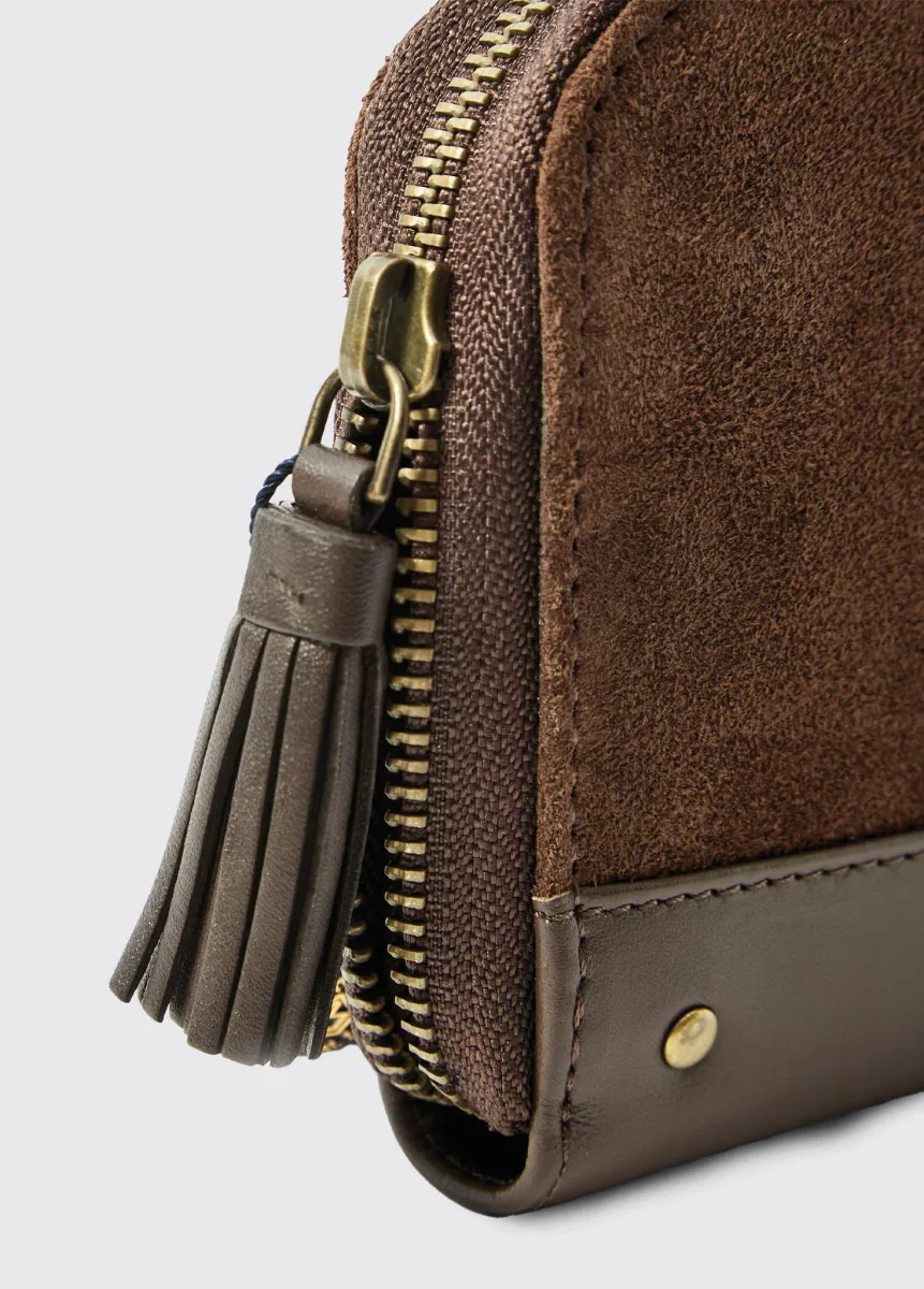 Fabriqué en daim de superbe qualité et garni de cuir, le porte-monnaie Northbrook est un complément élégant de la gamme de sacs à main et de vêtements Dubarry. Doublé d’une protection anti-RFID (empêchant l’identification par radiofréquence) pour plus de sécurité, il dispose d’un compartiment à monnaie zippé et plusieurs emplacements pour les billets et les cartes bancaires. Un porte-monnaie élégant à offrir ou à s’offrir.
