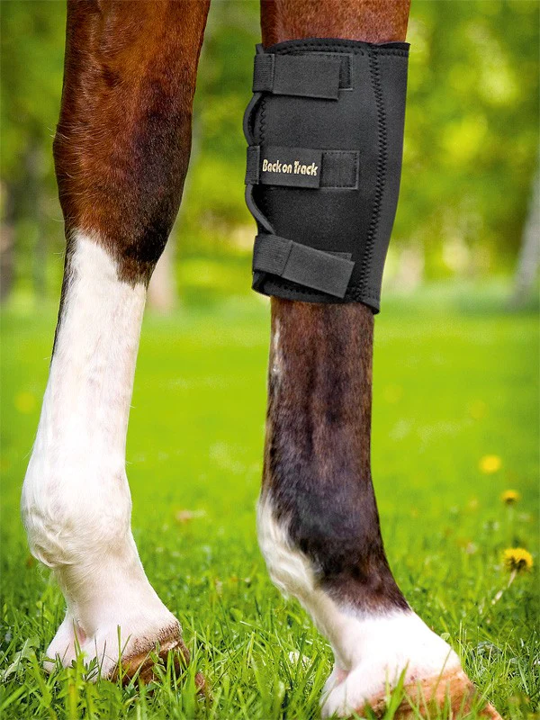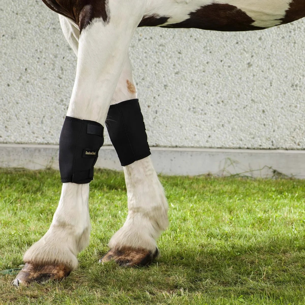 Créée par Back on Track®, marque experte en bien-être équin, cette genouillère allie innovation textile, confort et performance pour le soin quotidien des chevaux