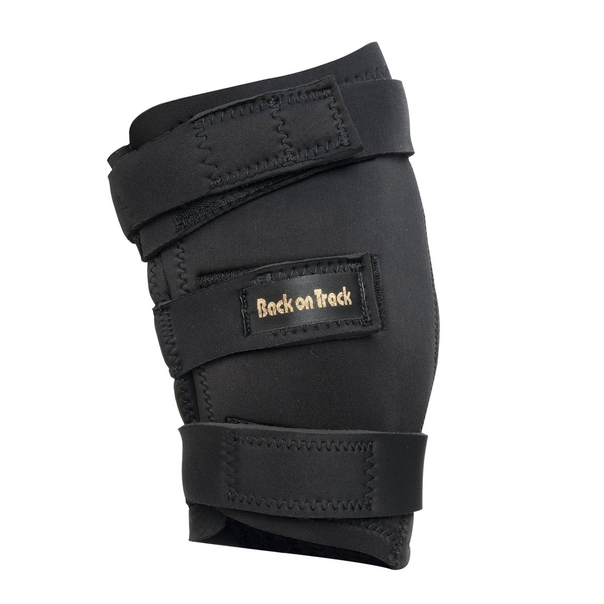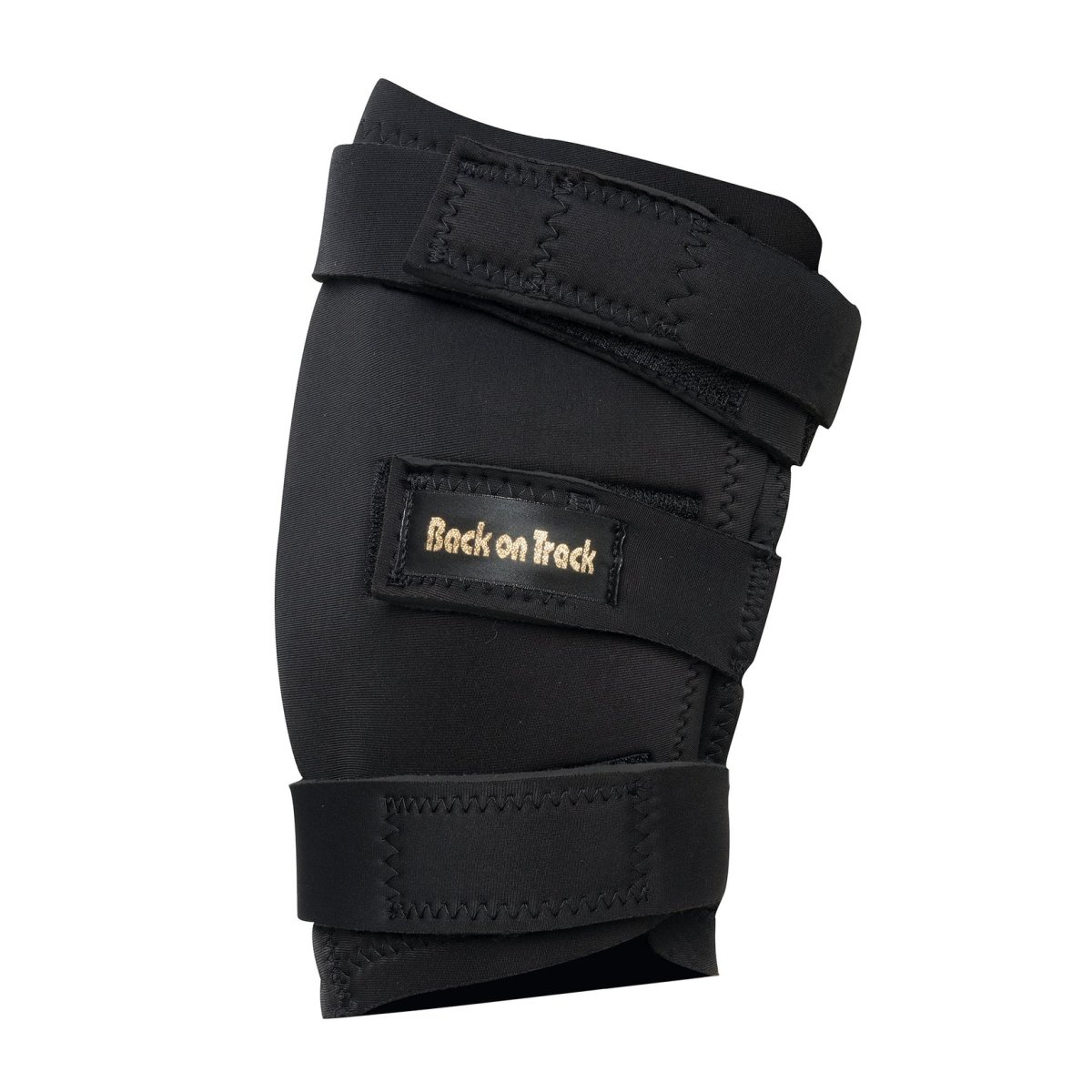 - Fermetures sécurisées : Trois bandes auto-agrippantes solides, dont une sangle centrale avec bande élastique en deux parties pour éviter la pression sur l’articulation.