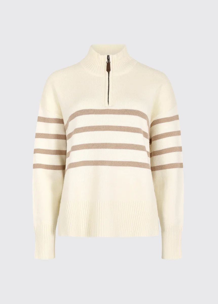 Notre pull Fonthtill est léger et merveilleusement doux. Il est fabriqué à partir d’un fil combiné conçu pour être doux au toucher, garder sa forme et être lavable en machine. Les rayures vives et contrastées ont une touche nautique distincte, très à l’aise en bord de mer, et qui apporte une touche de fraîcheur printanière partout où vous l’emmenez. Le col côtelé peut être zippé vers le haut ou vers le bas, ce qui vous permet de porter une couche légère pour le printemps et de vous sentir bien au chaud lors des soirées plus fraîches.