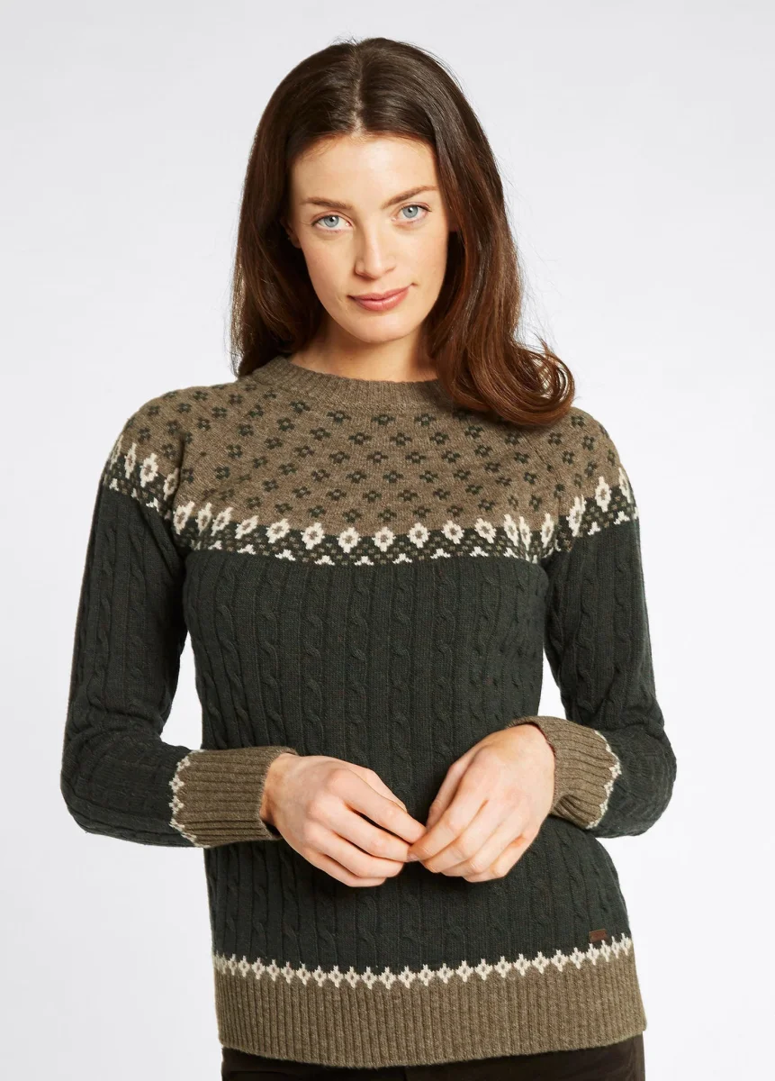 Fini les pulls Fair Isle qui grattent. Notre pull Thornfield présente un motif féminin tricoté dans un fil très doux, sans bouloches ni démangeaisons. Jolie couche saisonnière associée à un jean Dubarry et à des bottes lifestyle, il est aussi légèrement festif, ce qui vous permettra de troquer à juste titre votre pull de Noël pour un pull bien plus élégant.