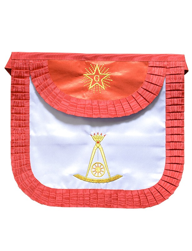 Tablier 2 Eme Degré. Rite Français Objet: Tablier Matière: Satin Dimension: 33cmx37cm. Couleur: Rouge . Dos: Noir avec poche.