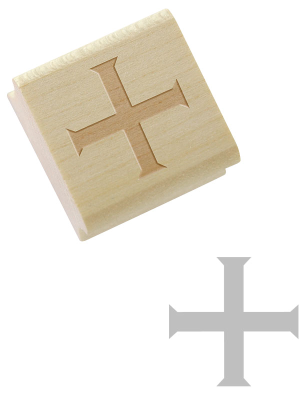 Tampon encreur en bois croix pattée alésée. Gravure du motif sur le dessus du tampon (facilite l'orientation).