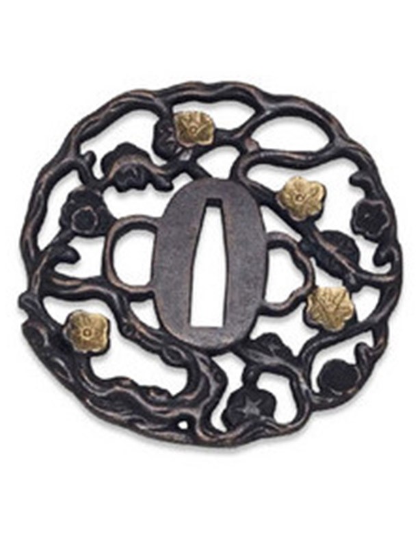 Tsuba fleurs dorées Dimensions: Epaisseur: 4,98 mm Diamètre: 72 mm Poids: 70gr